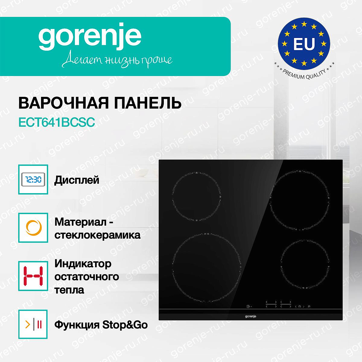 ** Все информационные материалы, представленные на Сайте, носят справочный характер и не могут в полной мере передавать достоверную информацию о свойствах, комплектации и характеристиках товара, включая цвета, размеры и формы. Фирма-производитель оставляет за собой право на внесение изменений в конструкцию, дизайн и комплектацию товара без предварительного уведомления. Перед оформлением Заказа Покупатель должен обратиться к Продавцу для уточнения свойств и характеристик Товара. Подробная информация о товаре указывается в инструкции и на упаковке товара. Используемое название в России: Горенье ECT641BCSC