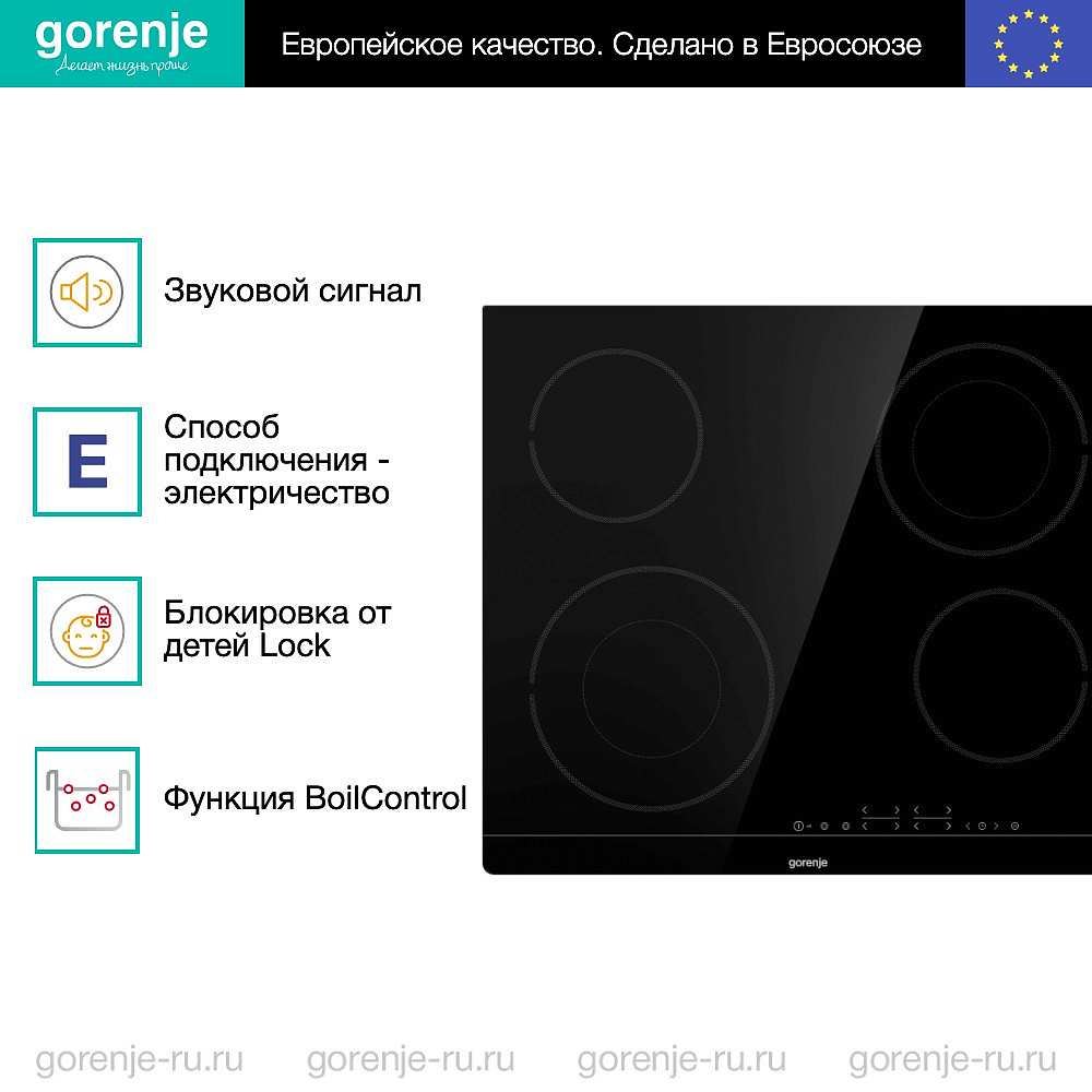 ** Все информационные материалы, представленные на Сайте, носят справочный характер и не могут в полной мере передавать достоверную информацию о свойствах, комплектации и характеристиках товара, включая цвета, размеры и формы. Фирма-производитель оставляет за собой право на внесение изменений в конструкцию, дизайн и комплектацию товара без предварительного уведомления. Перед оформлением Заказа Покупатель должен обратиться к Продавцу для уточнения свойств и характеристик Товара. Подробная информация о товаре указывается в инструкции и на упаковке товара. Используемое название в России: Горенье ECT644BSC