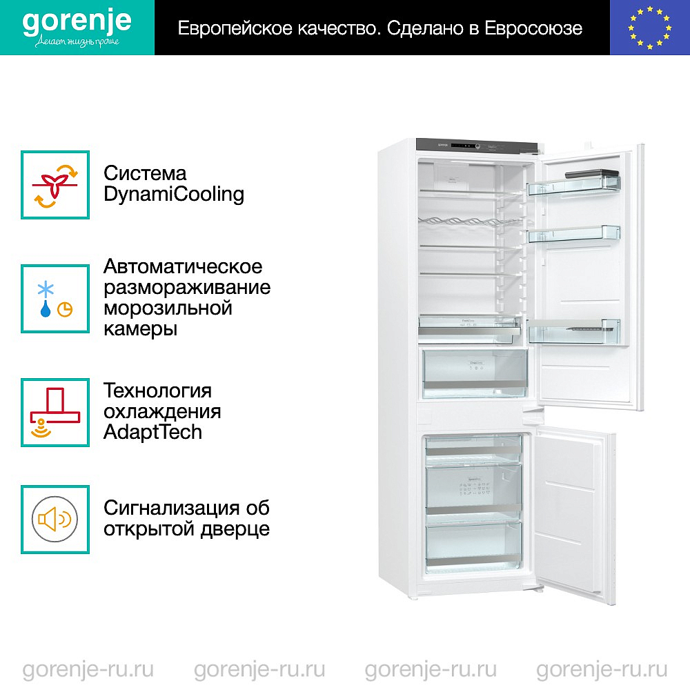 Двухкамерный холодильник Gorenje NRKI4182A1 — это современная модель с большим набором функций. Она оснащена системой ионизации воздуха IonAir и адаптивной технологией охлаждения AdaptTech, которые обеспечивают равномерное охлаждение и позволяют дольше сохранять свежесть продуктов, а также избежать появления неприятного запаха. Встраиваемая конструкция позволяет легко вписать ее в интерьер, выполненный в любом стиле как современном, так и более традиционном. Дверцу при монтаже можно навесить с любой стороны, что предоставляет большую свободу при планировании будущего кухонного гарнитура и установке техники.