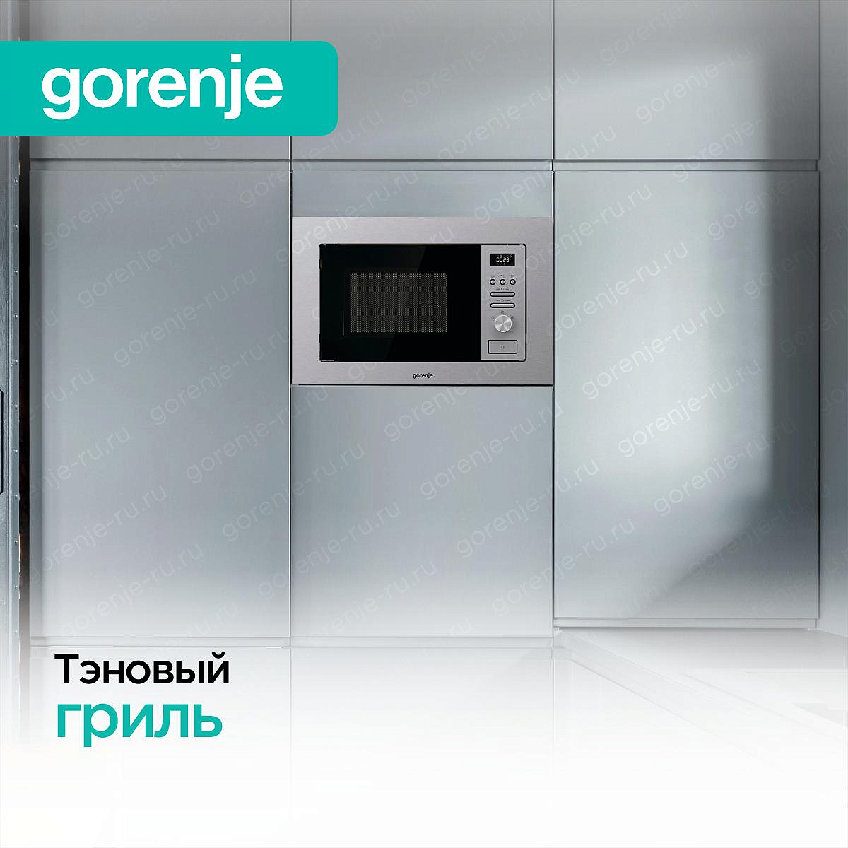 Освещение во встраиваемых микроволновках Gorenje — яркое, равномерное и энергоэффективное. Чаще используется LED-подсветка, реже — галогенная. Свет автоматически включается при открытии дверцы и во время работы — вы всегда видите, как прогревается или готовится блюдо, без необходимости открывать камеру. Особенно важно для встраиваемых моделей: они часто установлены на уровне глаз или выше, и хорошая подсветка упрощает контроль. LED-лампы не нагреваются, служат долго и потребляют минимум энергии.
