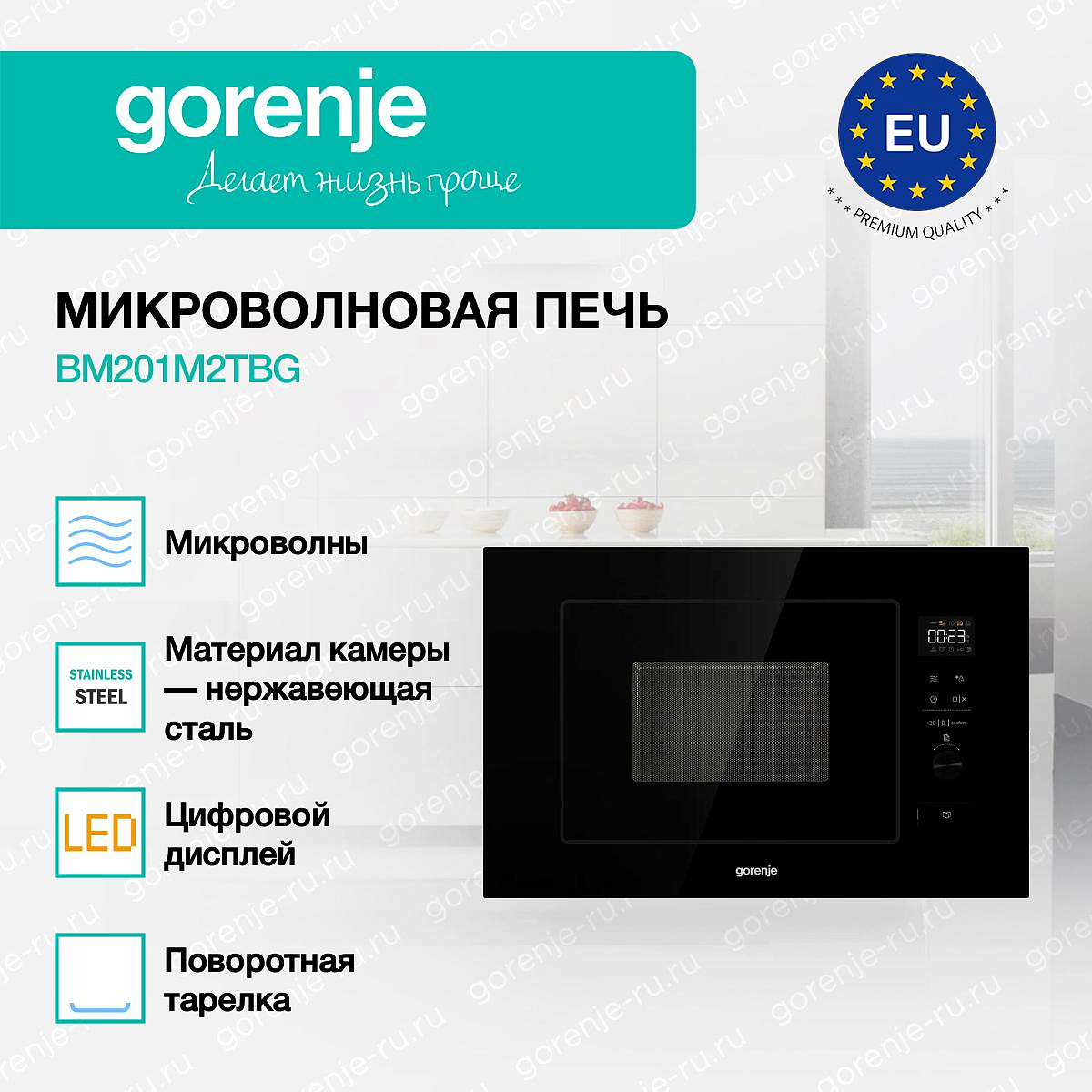 ** Все информационные материалы, представленные на Сайте, носят справочный характер и не могут в полной мере передавать достоверную информацию о свойствах, комплектации и характеристиках товара, включая цвета, размеры и формы. Фирма-производитель оставляет за собой право на внесение изменений в конструкцию, дизайн и комплектацию товара без предварительного уведомления. Перед оформлением Заказа Покупатель должен обратиться к Продавцу для уточнения свойств и характеристик Товара. Подробная информация о товаре указывается в инструкции и на упаковке товара. Используемое название в России: Горенье BM201M2TBG
