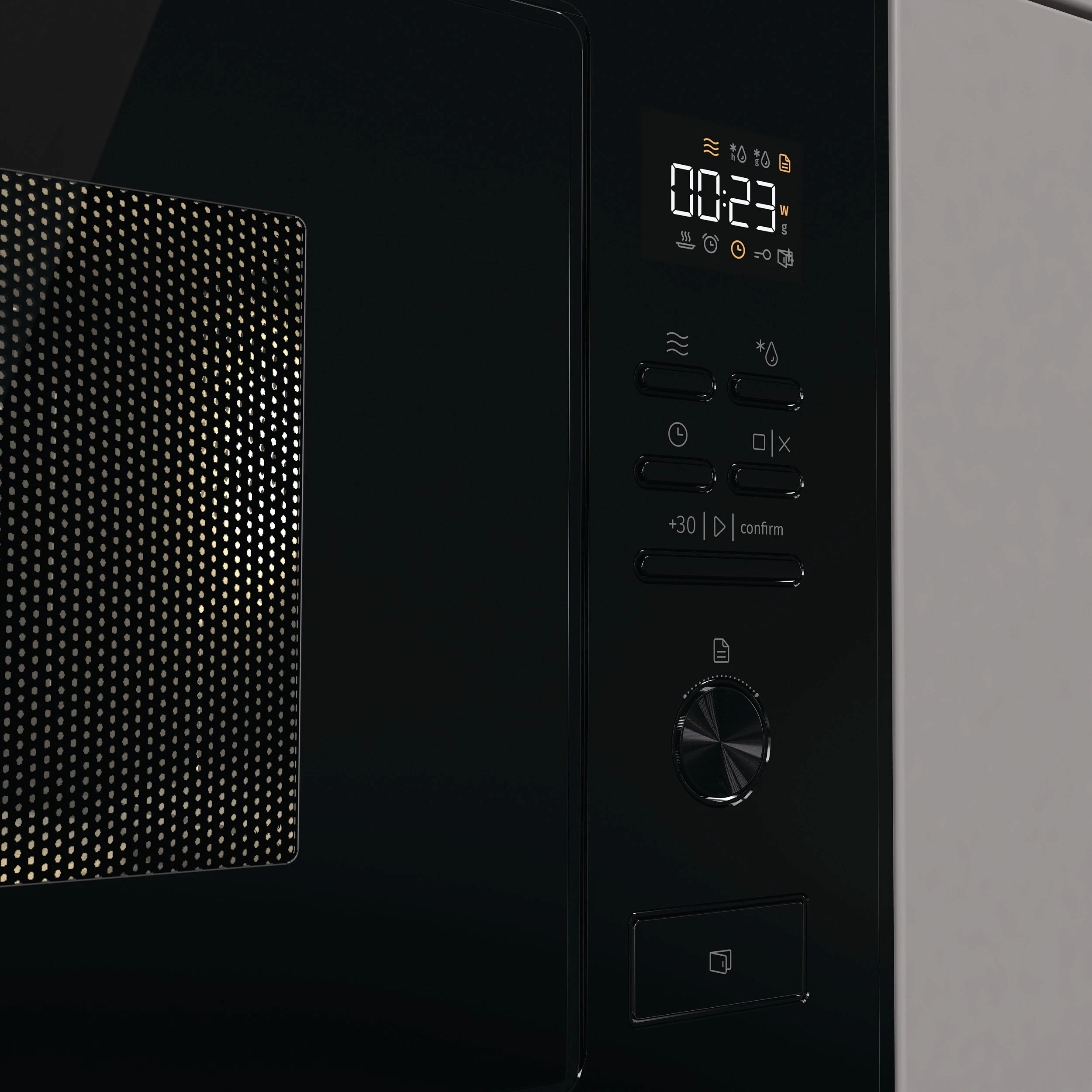 Освещение во встраиваемых микроволновках Gorenje — яркое, равномерное и энергоэффективное. Чаще используется LED-подсветка, реже — галогенная. Свет автоматически включается при открытии дверцы и во время работы — вы всегда видите, как прогревается или готовится блюдо, без необходимости открывать камеру. Особенно важно для встраиваемых моделей: они часто установлены на уровне глаз или выше, и хорошая подсветка упрощает контроль. LED-лампы не нагреваются, служат долго и потребляют минимум энергии.
