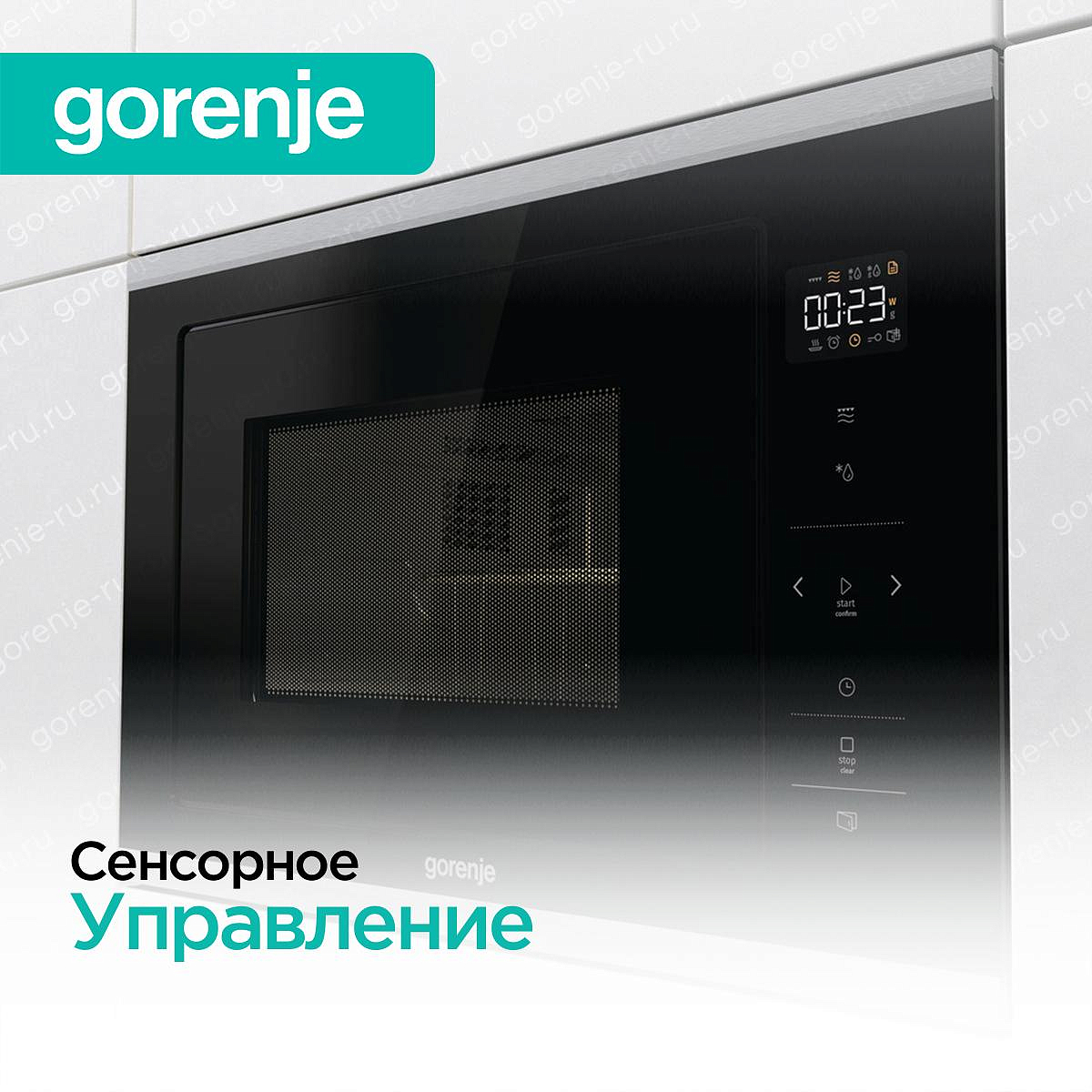 Освещение во встраиваемых микроволновках Gorenje — яркое, равномерное и энергоэффективное. Чаще используется LED-подсветка, реже — галогенная. Свет автоматически включается при открытии дверцы и во время работы — вы всегда видите, как прогревается или готовится блюдо, без необходимости открывать камеру. Особенно важно для встраиваемых моделей: они часто установлены на уровне глаз или выше, и хорошая подсветка упрощает контроль. LED-лампы не нагреваются, служат долго и потребляют минимум энергии.
