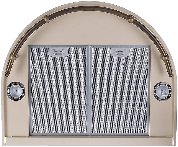 Вытяжка DK 6335 RW выдержанна в ретро-стиле. Корпус цвета «слоновая кость» дополнен бронзовой фурнитурой и кнопочным управлением. Два металлических фильтра препятствуют оседанию жировых частиц и попаданию других загрязнений на внутренние детали. Две галогеновые лампы экономят электроэнергию и служат дополнительным источником света на кухне.