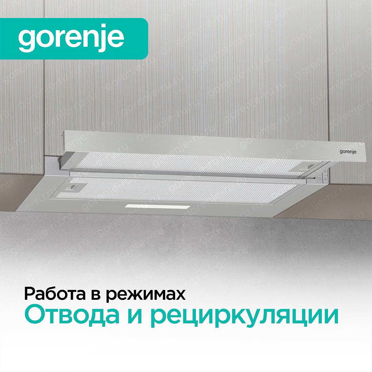 Монтаж в шкаф — элегантное и практичное решение для вытяжек Gorenje. Техника полностью или частично скрывается внутри навесного кухонного шкафа, сохраняя единый стиль интерьера. Корпус встраивается в мебель, а управление и воздухозабор остаются доступными. Такие модели часто компактны, работают тише и оснащены эффективными фильтрами — идеальны для небольших кухонь. Монтаж требует подготовки шкафа: точных размеров, вентиляционного отверстия и усиленного крепления. Подходит для рециркуляции и отвода воздуха. Эстетично, незаметно, функционально — вытяжка работает, а вы её почти не видите.