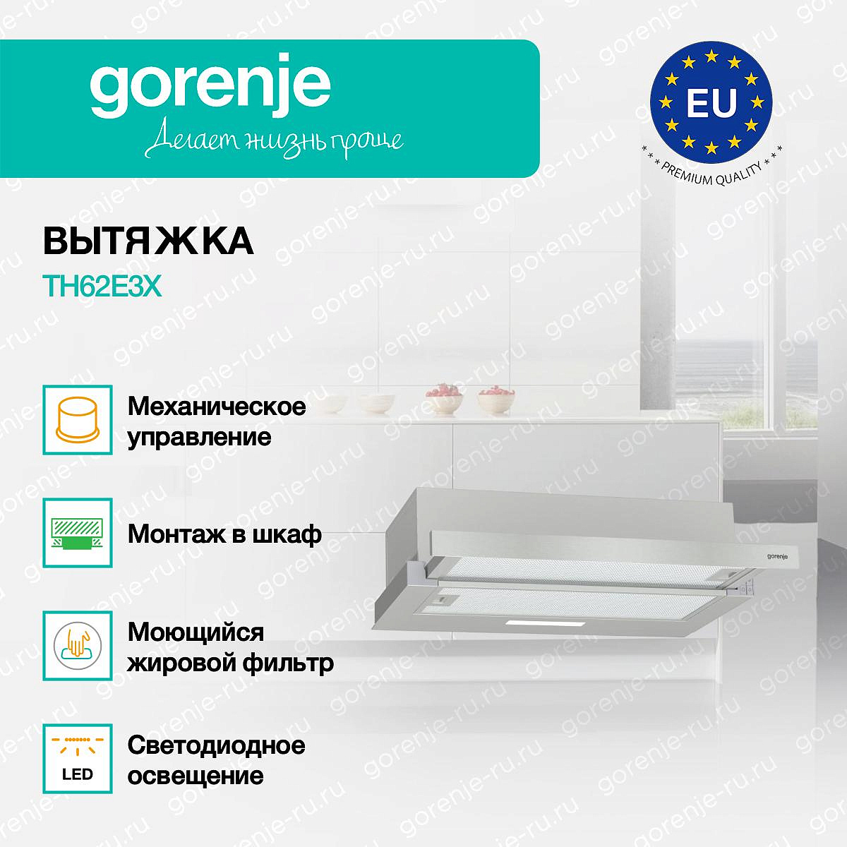** Все информационные материалы, представленные на Сайте, носят справочный характер и не могут в полной мере передавать достоверную информацию о свойствах, комплектации и характеристиках товара, включая цвета, размеры и формы. Фирма-производитель оставляет за собой право на внесение изменений в конструкцию, дизайн и комплектацию товара без предварительного уведомления. Перед оформлением Заказа Покупатель должен обратиться к Продавцу для уточнения свойств и характеристик Товара. Подробная информация о товаре указывается в инструкции и на упаковке товара. Используемое название в России: Горенье TH62E3X