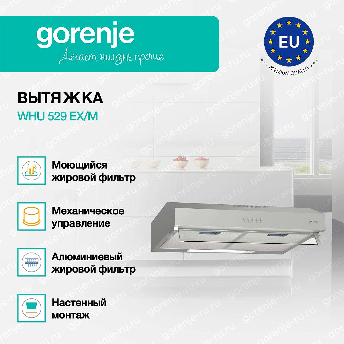 ** Все информационные материалы, представленные на Сайте, носят справочный характер и не могут в полной мере передавать достоверную информацию о свойствах, комплектации и характеристиках товара, включая цвета, размеры и формы. Фирма-производитель оставляет за собой право на внесение изменений в конструкцию, дизайн и комплектацию товара без предварительного уведомления. Перед оформлением Заказа Покупатель должен обратиться к Продавцу для уточнения свойств и характеристик Товара. Подробная информация о товаре указывается в инструкции и на упаковке товара. Используемое название в России: Горенье WHU 529 EX/M