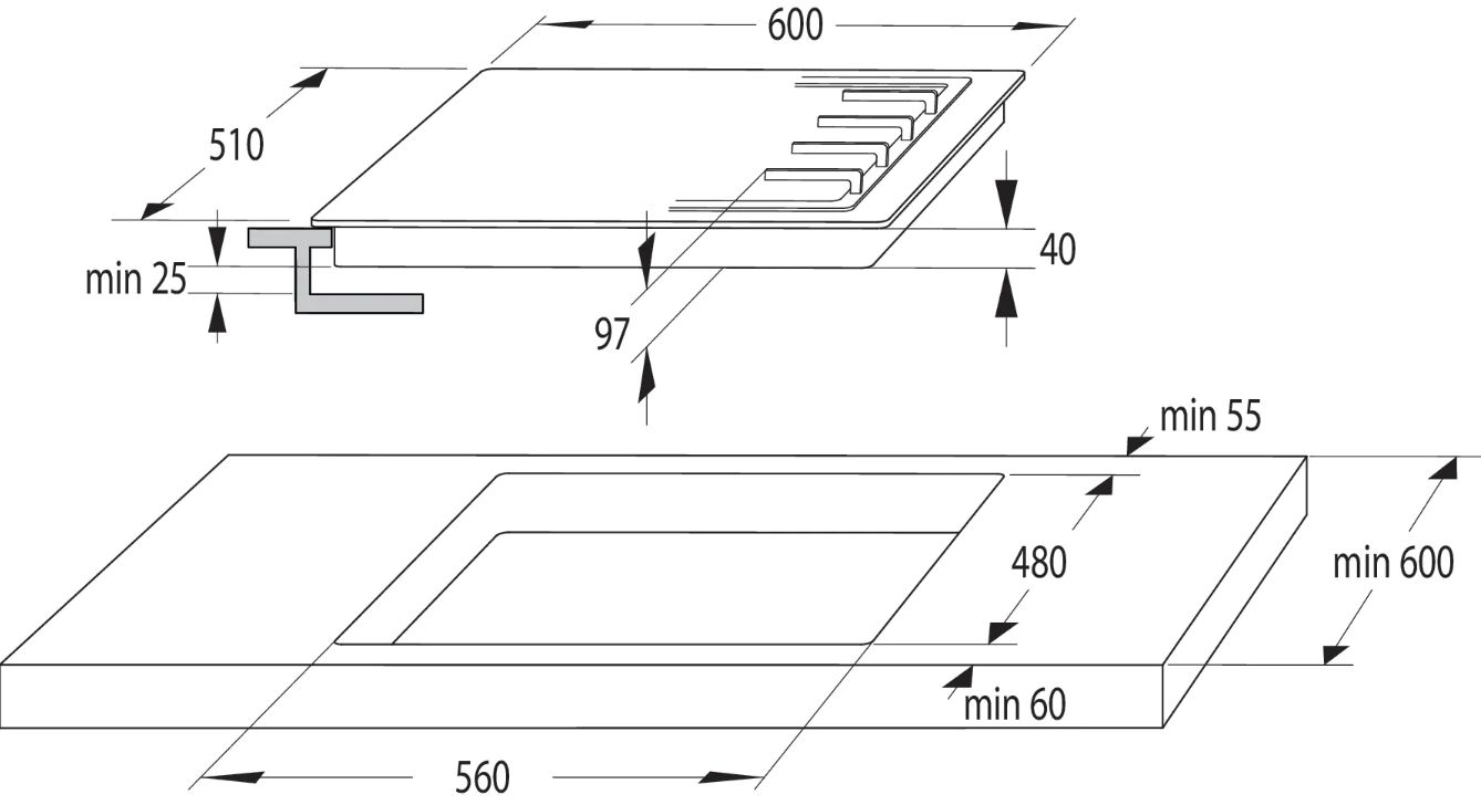 Схема встраивания для варочной панели Gorenje GTW 641 AKB