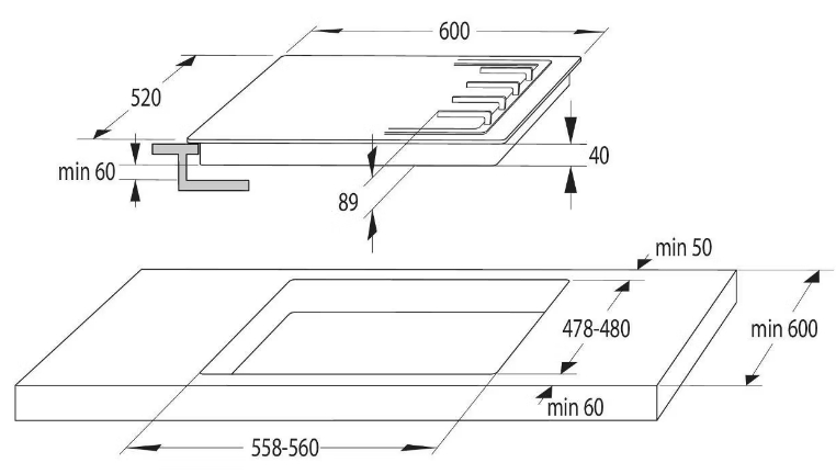 Схема встраивания для варочной панели Gorenje GTW641BHF