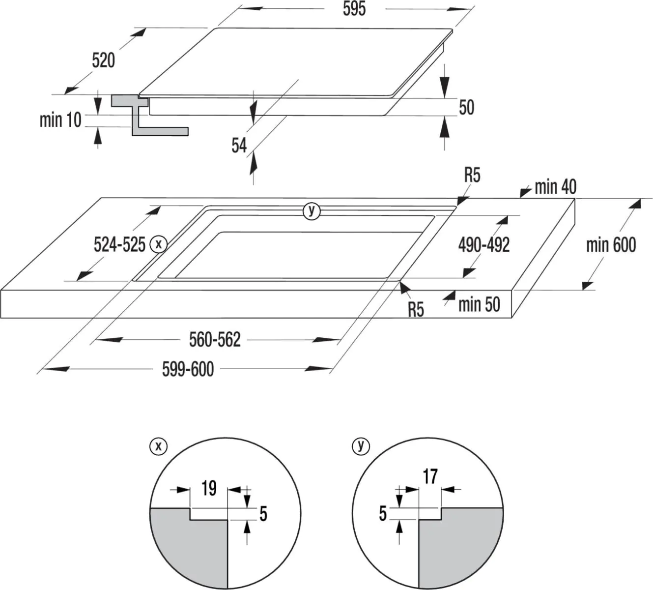 Схема встраивания для варочной панели Gorenje GI6433BCWF