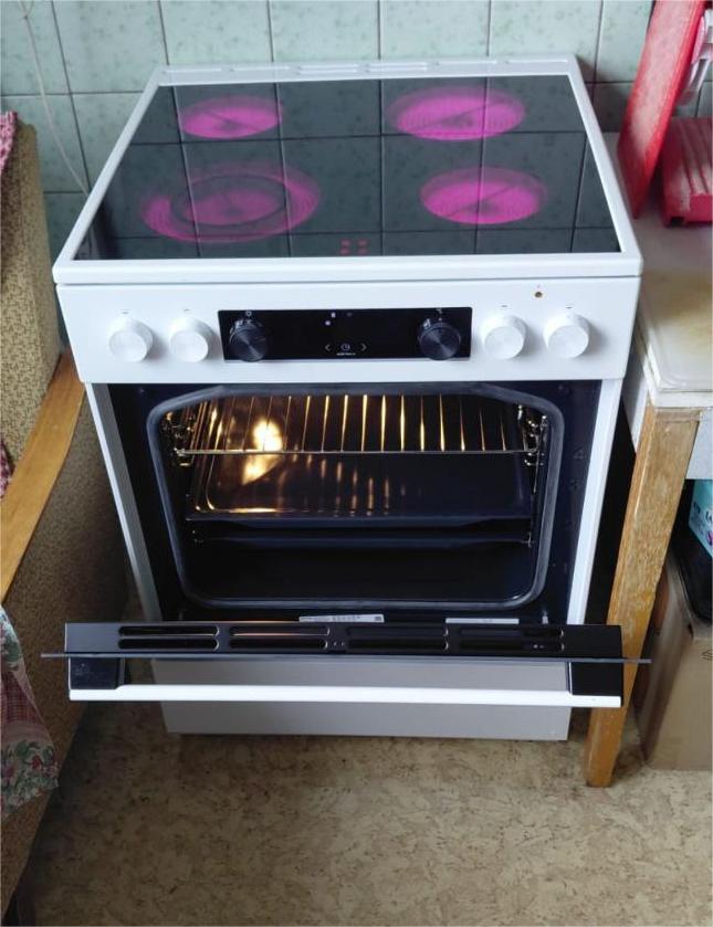 Плита готовит ровно, духовка большая и простая в управлении, стеклокерамика легко моется и экономна.